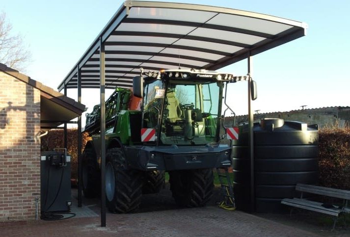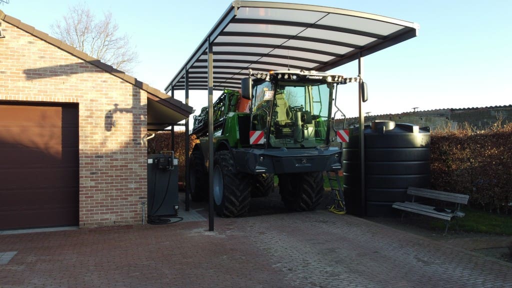 Door de elegante lijn is deze carport ook uitermate geschikt om aaneengeschakeld meer dan één wagen droog te houden.